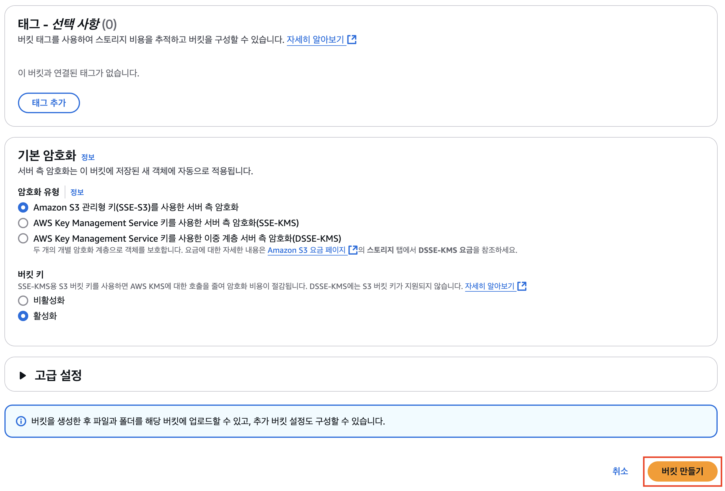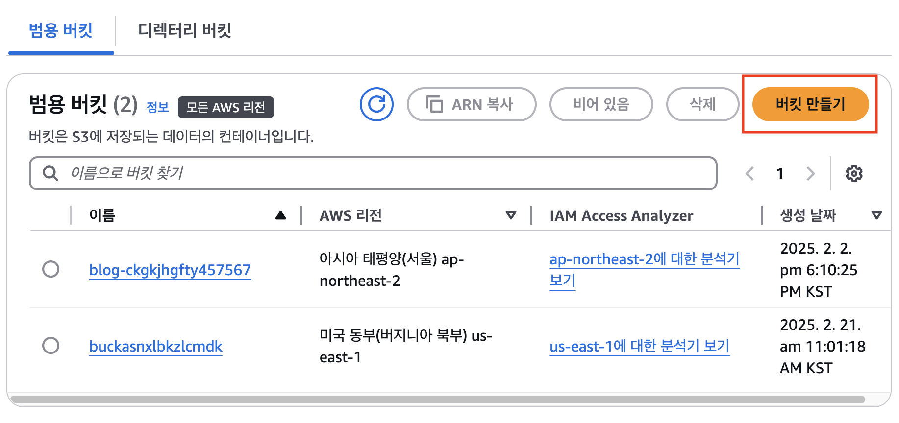 - 버킷 만들기 클릭