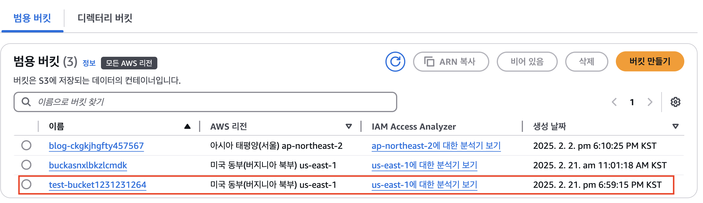 - 아래와 같이 버킷이 생성되면 성공