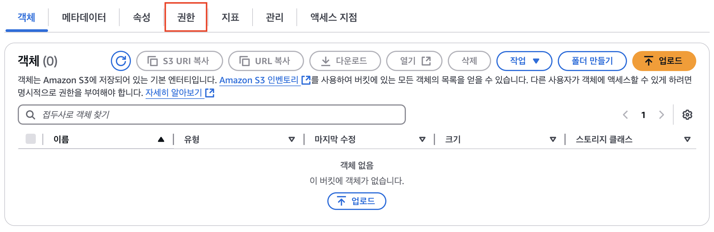 - 해당 버킷으로 이동 후 권한 클릭