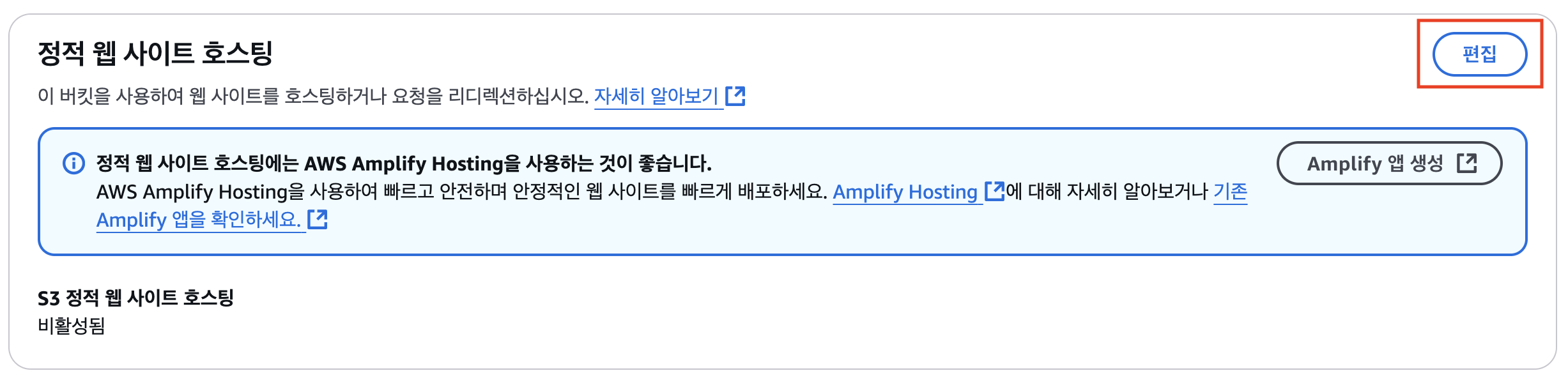 - 하단 정적 웹 사이트 호스팅 편집 클릭
