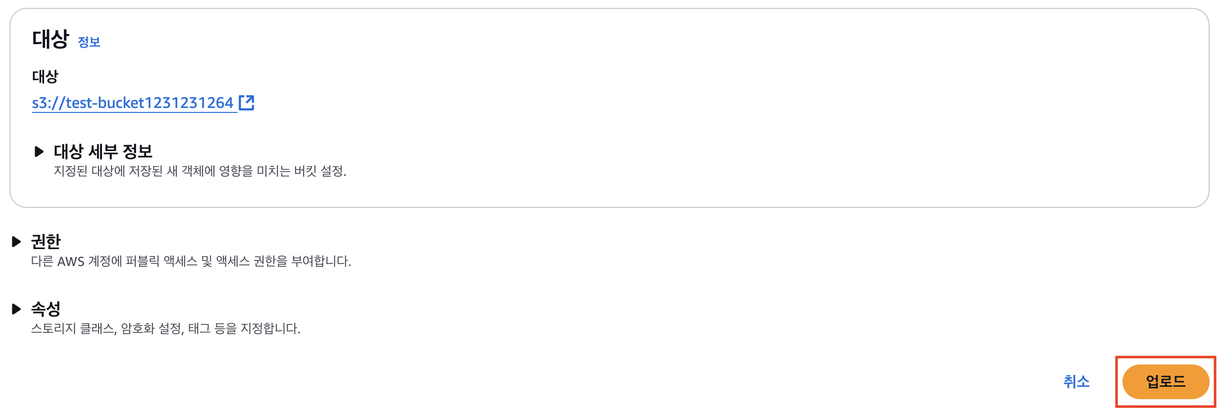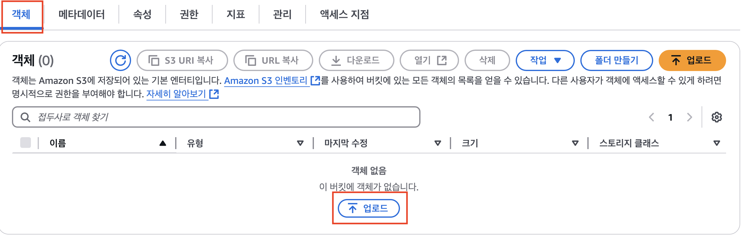 - 버킷 객체로 이동, 업로드 버튼 클릭