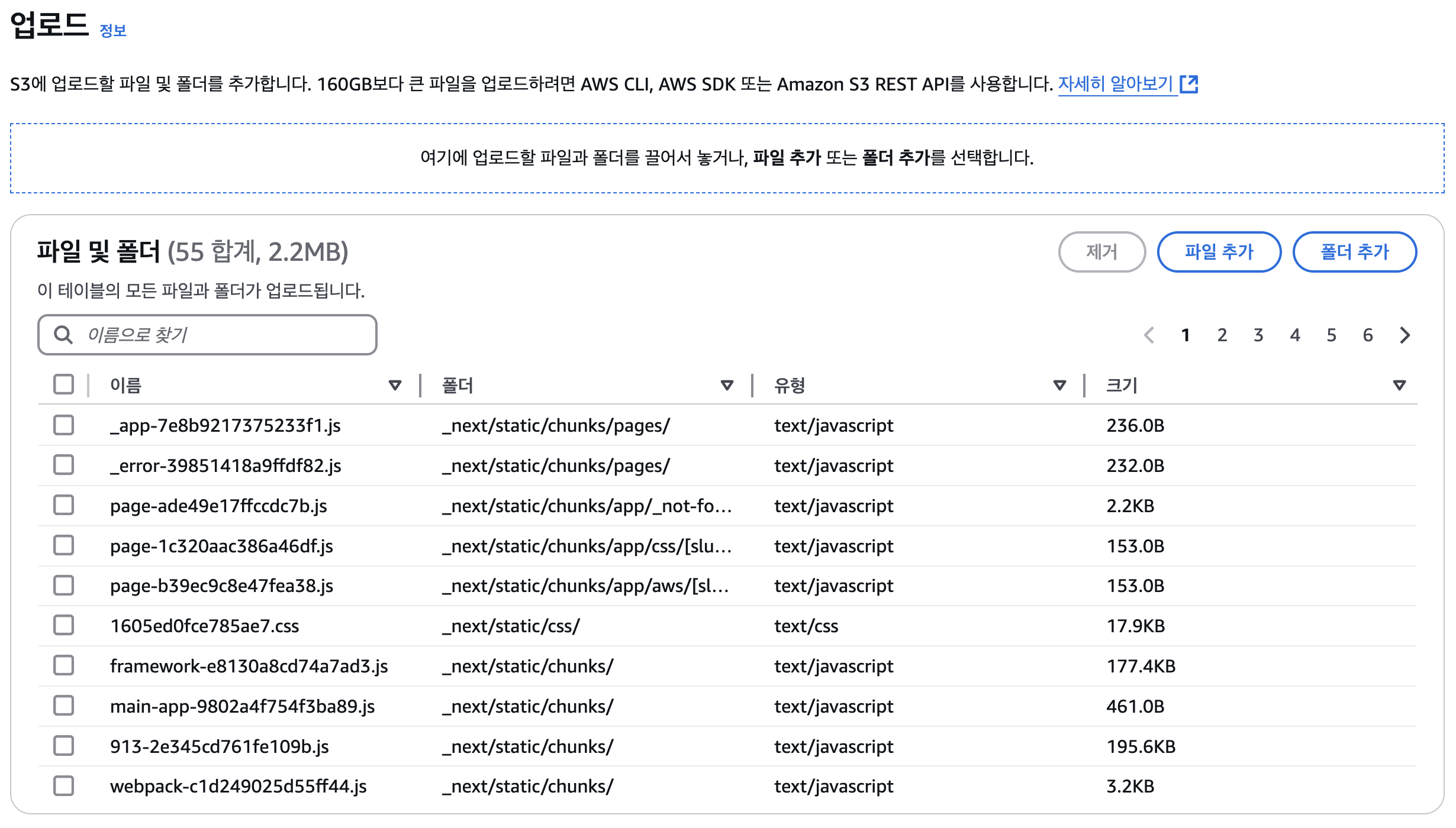 버킷 정적 페이지 파일 업로드 (수동)