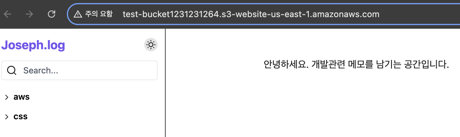 - 이제 정적 웹 사이트 호스팅을 위한 설정은 끝났고 정적 페이지를 업로드 해보자.