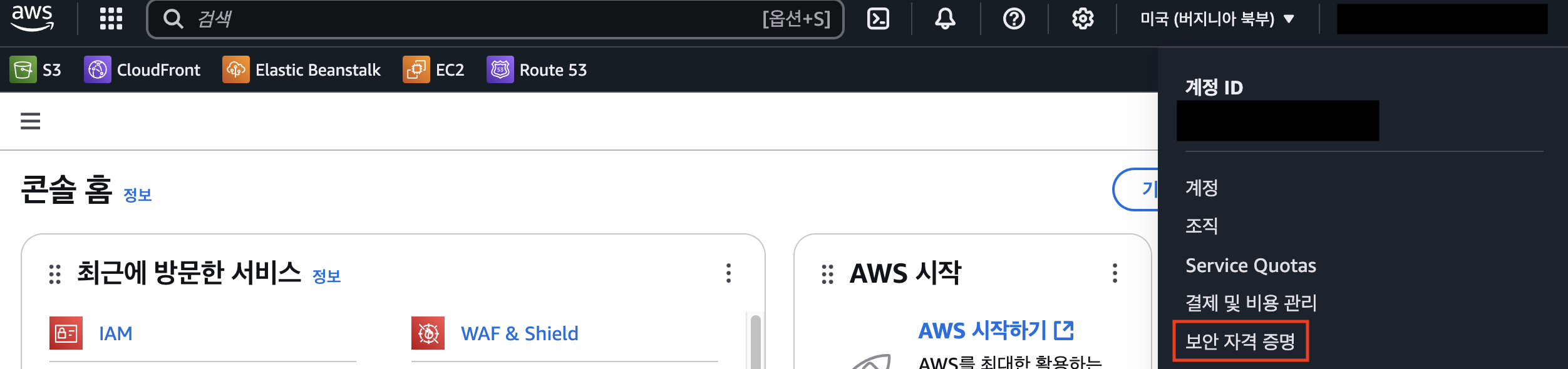 - 보안 자격 증명으로 이동