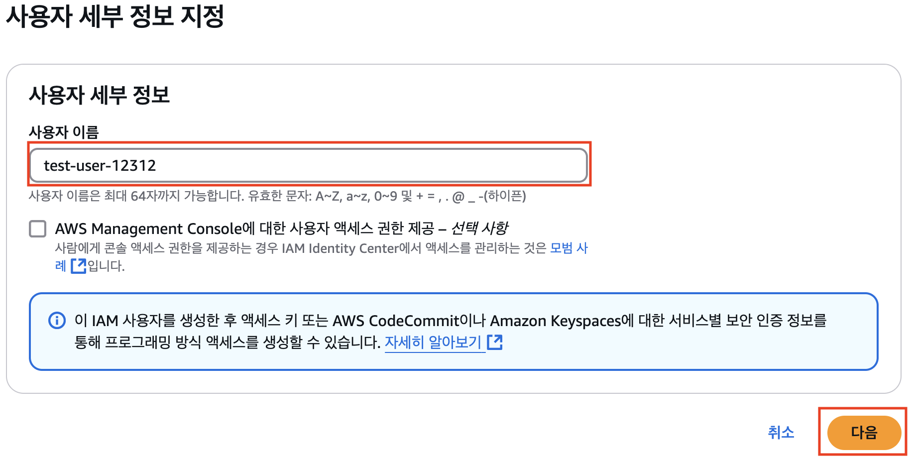 - 사용자 이름 입력 및 다음 클릭