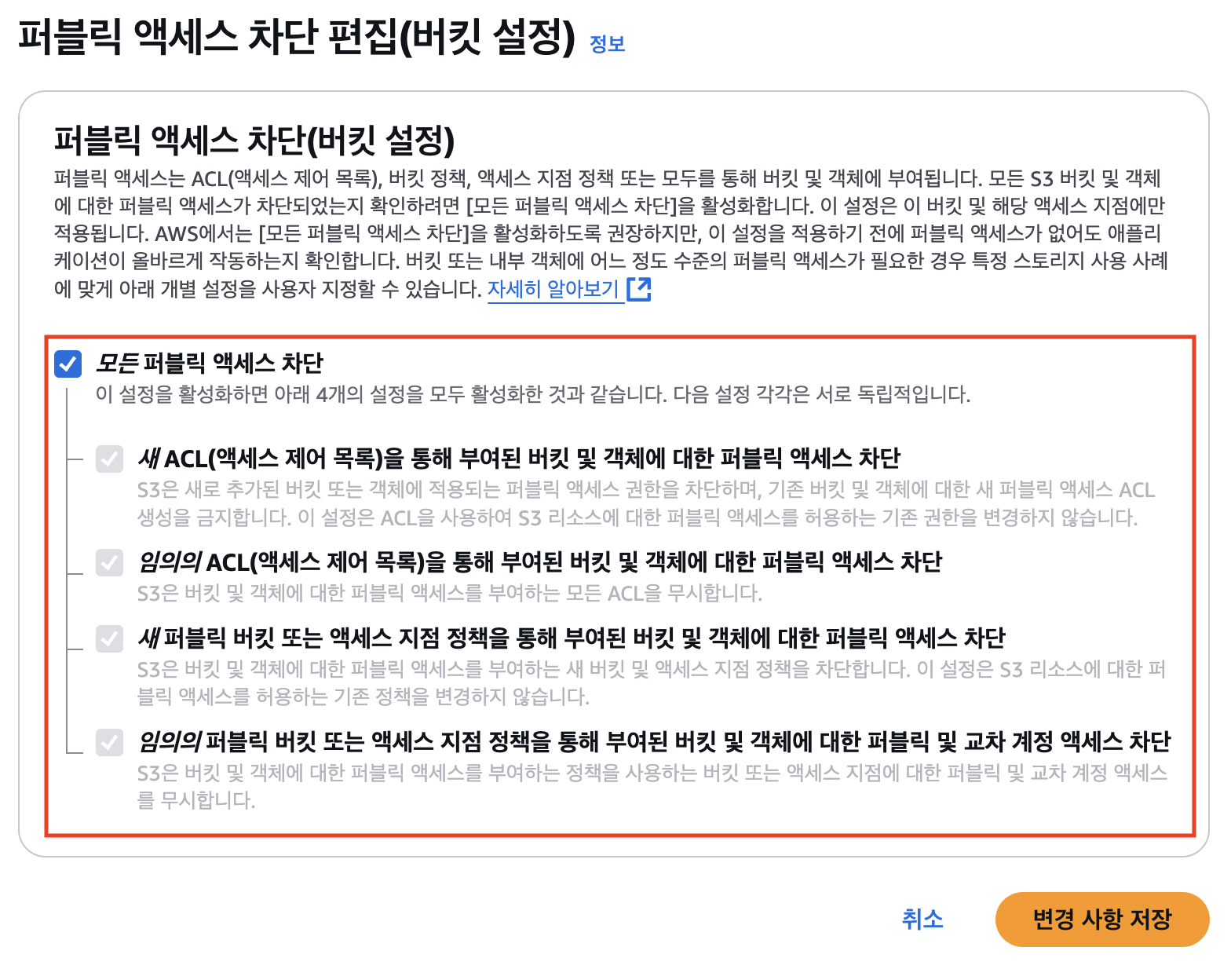 앞으로 CloudFront를 통해서만 버킷에 접근 할 수 있도록 퍼블릭 엑세스를 차단해야한다.